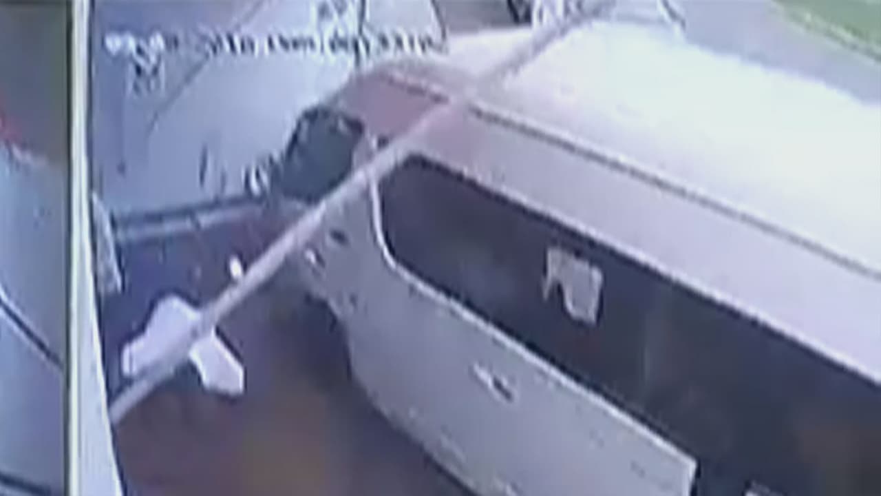 Una cámara de seguridad captó el momento en que el vehículo dobló la esquina y arrolló a las personas. Afortunadamente, nadie resultó herido.