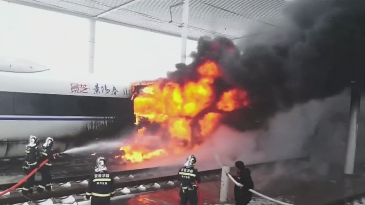 En video: Infernales llamas consumen un tren de alta velocidad en China