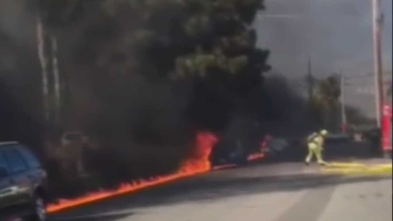 El fuego comenzó en una cerca y se alimentó de un líquido inflamable derramado a lo largo de la calle. Al menos tres autos quedaron destruidos.