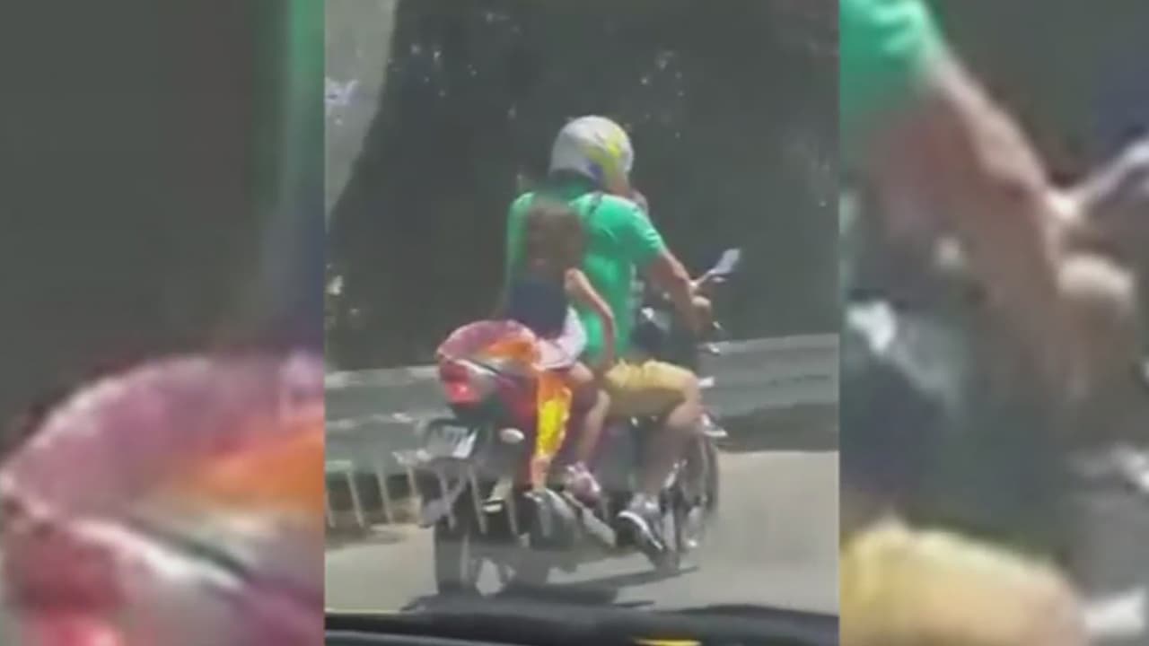 En video: Motociclista transporta sin casco a dos menores en una autopista de México