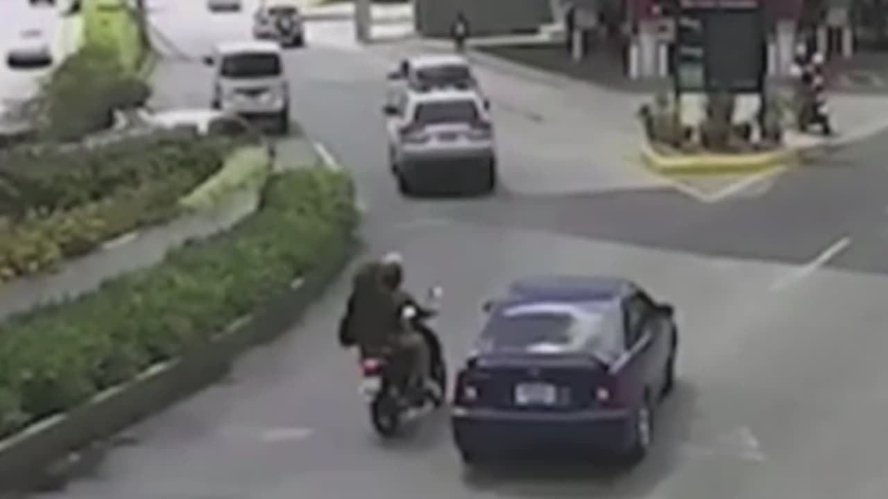 Motociclistas vuelan por los aires y terminan incrustados en una valla publicitaria en Guatemala