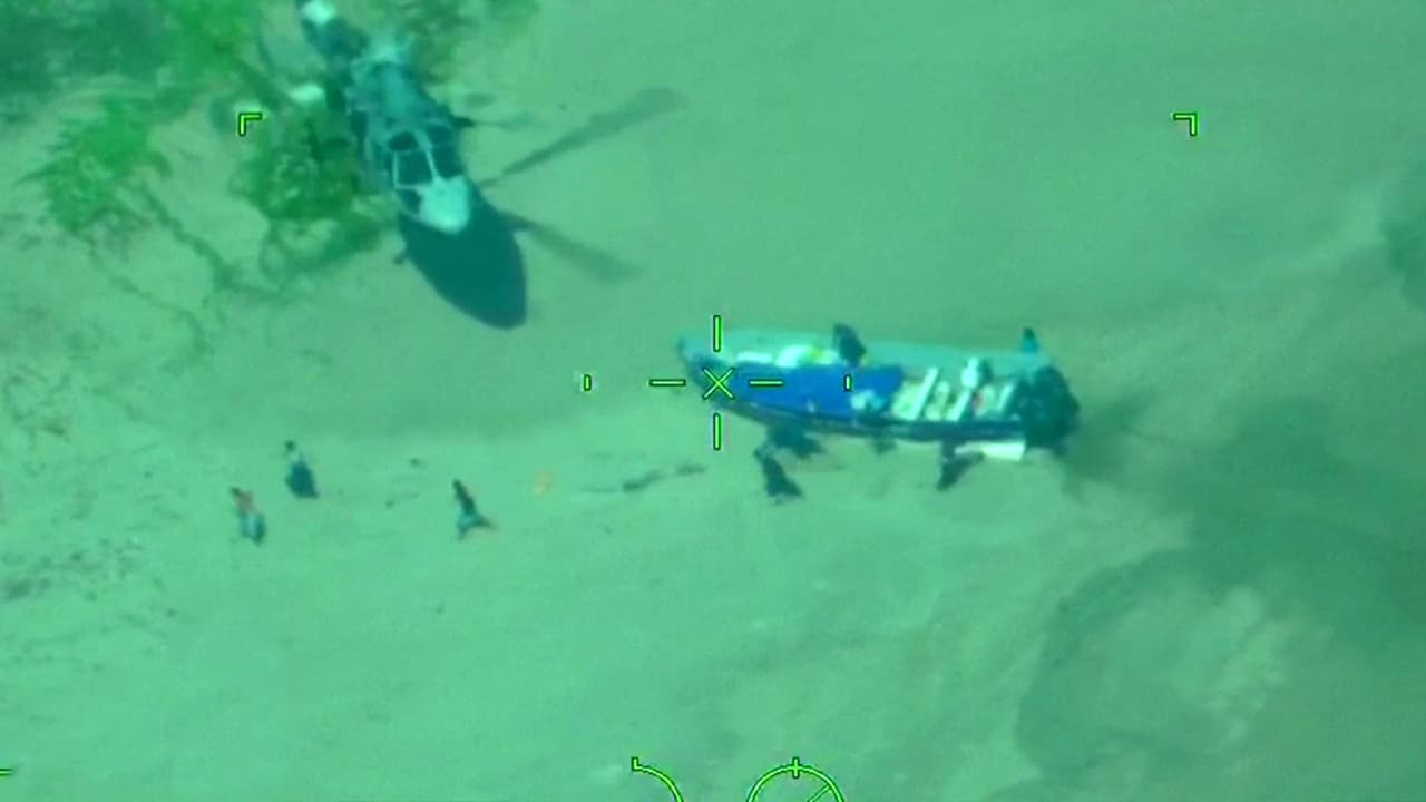 Desde el aire, las autoridades grabaron la persecución de la embarcación, que viajaba a toda velocidad. Los narcotraficantes desembarcaron y fueron arrestados.