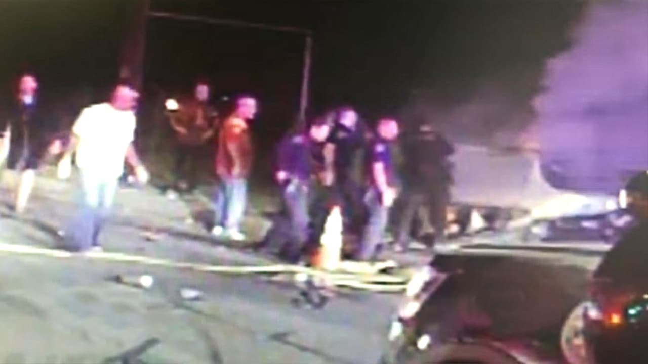 En video: Policías intentan sacar a un conductor de un auto en llamas