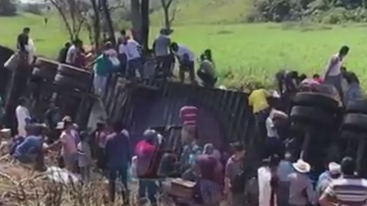 Residentes arrasan con el cargamento de un camión accidentado en México