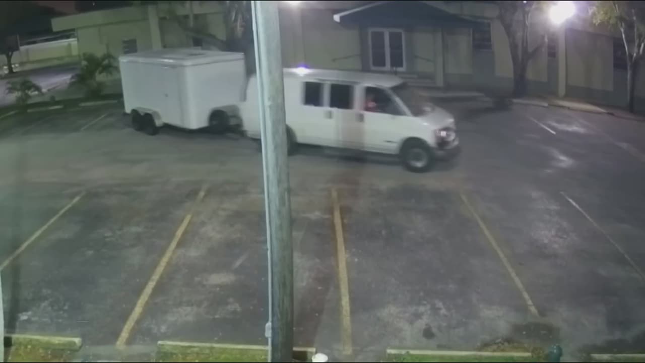Las cámaras de seguridad captaron el momento en que en una camioneta se roban el contenedor con las donaciones que habían sido entregadas por los estudiantes del centro educativo en Florida.