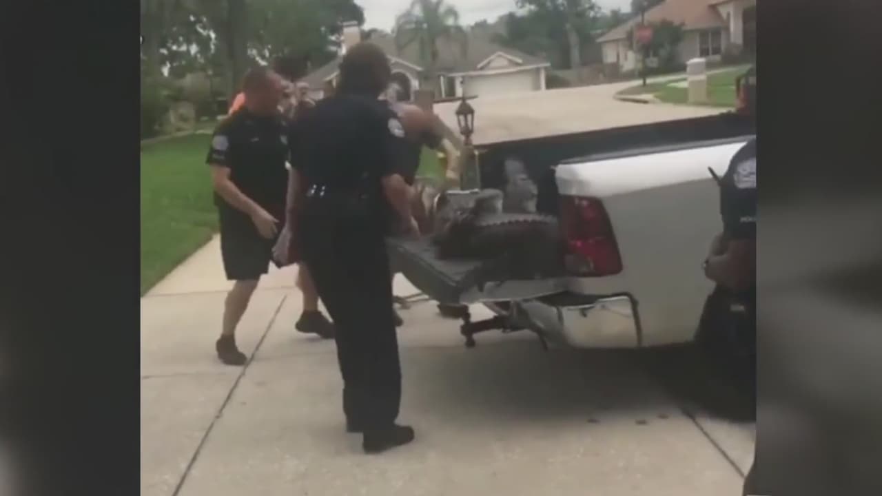 El animal apareció en un vecindario de Florida y los agentes que lo iban a trasladar acabaron en el piso a causa de los golpes que les propinó.