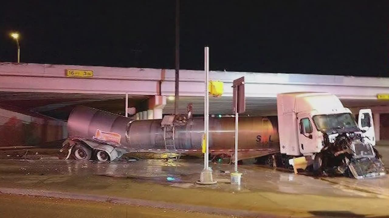 Un camión cisterna fuera de control cayó de un paso elevado en Texas