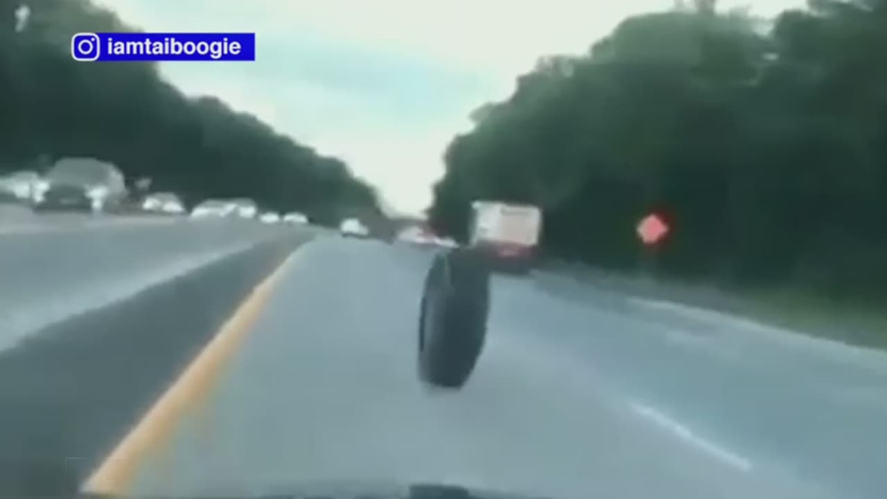 Un neumático suelto por la autopista choca con un auto y provoca un fuerte accidente