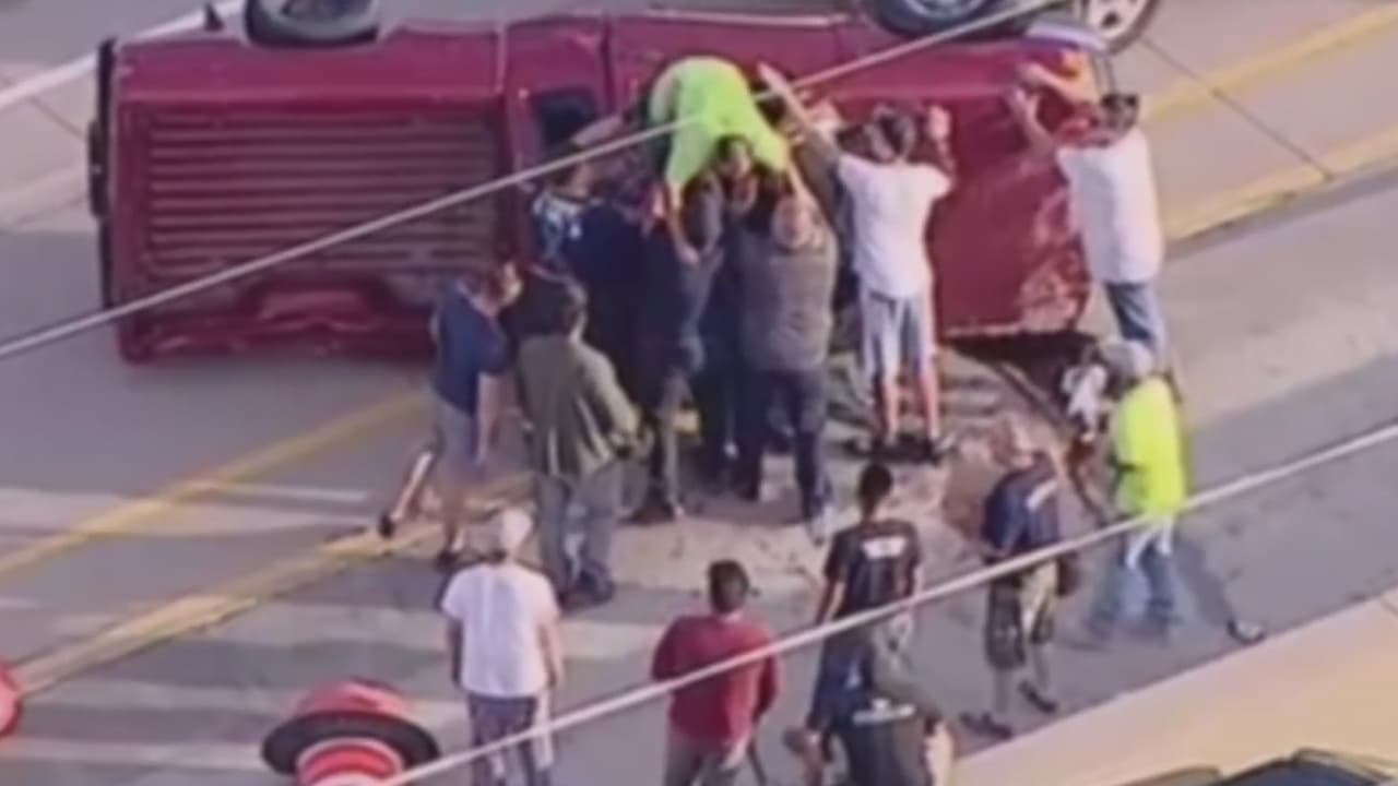 En video: Una camioneta vuelca en mitad de una autopista y choca con un muro en Illinois