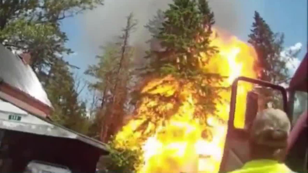 El hombre trabajaba extinguiendo un fuego de maleza cuando un tanque de gas propano estalló como una bomba. La llamarada lo envolvió y casi lo mata. El rescatista tuvo que ser atendido por las quemaduras que sufrió en el rostro.