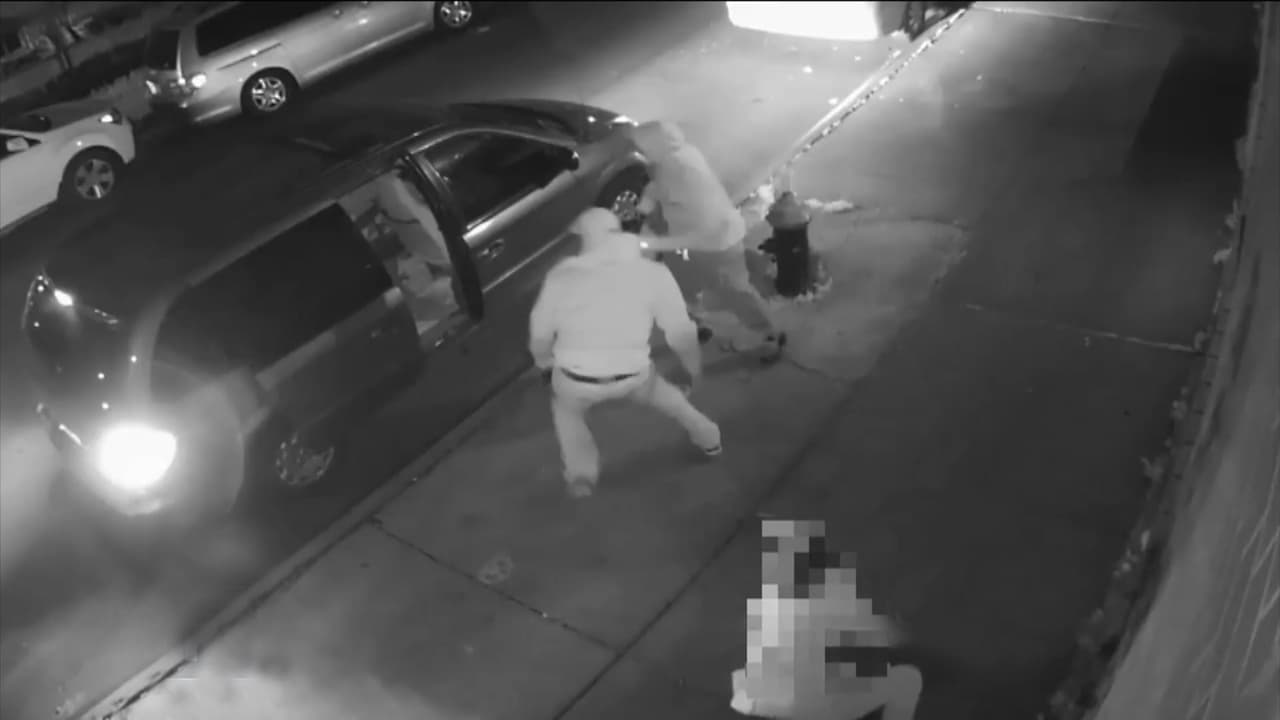 Dos sujetos salieron de una furgoneta en esta calle de Nueva York y forcejearon con la víctima, que trató de resistirse al asalto. Finalmente, la lanzaron al suelo y se llevaron su cartera. Las autoridades piden ayuda para encontrar a los responsables.