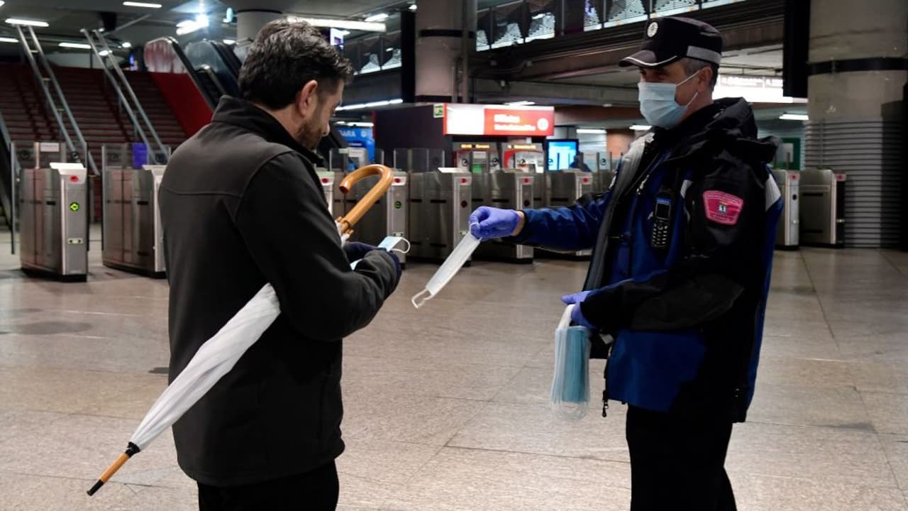 Entregan mascarillas gratis para quienes utilizan el transporte público en Madrid