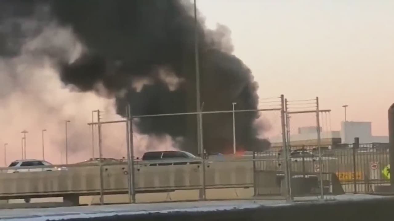 Envueltos en llamas, así quedaron casi 20 vehículos en un aeropuerto de Nueva Jersey