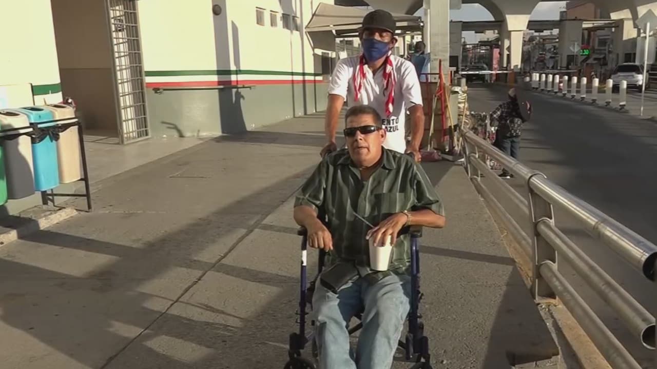 "Es un Uber fronterizo": transporta en silla de ruedas a quienes lo necesitan en puente entre EEUU y México