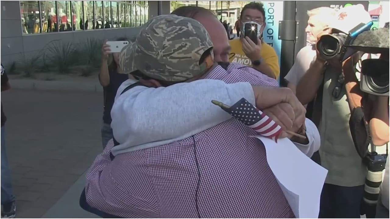 Robert Vibar fue recibido en EEUU por su familia y veteranos a quienes ayudó. Lo agasajaron con una entusiasta bienvenida con carteles, le dieron abrazos y le manifestaron palabras de agradecimiento. Regresó al país como residente permanente.