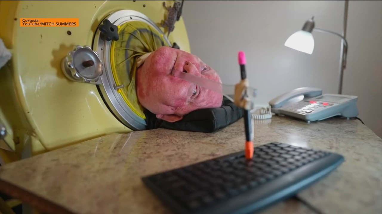 Está paralizado del cuello hacia abajo y sin la máquina no podría sobrevivir. Cuando tenía 6 años quedó infectado por la poliomielitis en EEUU. A los 75 vive con un pulmón de acero sin el cual le sería imposible continuar viviendo. El cineasta Mitch Summers obtuvo esta entrevista con el hombre. Cortesía. @Mitch__Summers en Instagram.