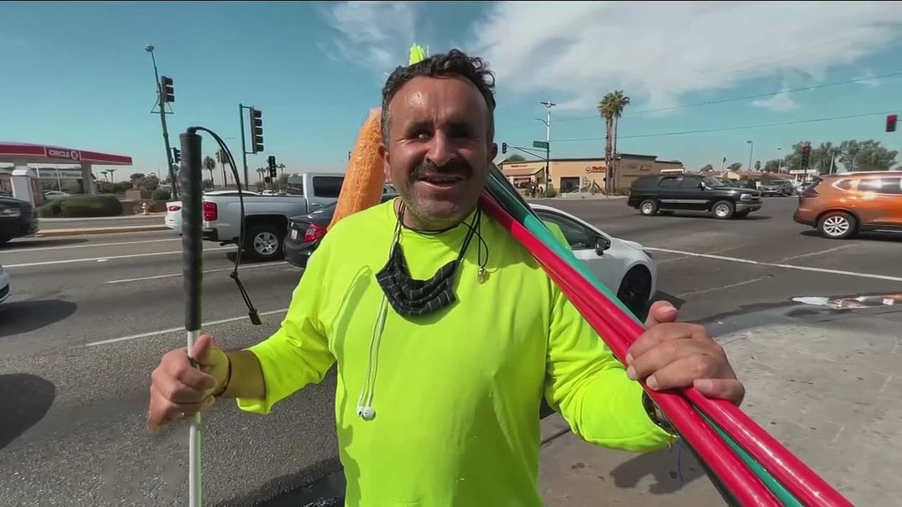 Este padre ciego sale a vender escobas para poder sacar adelante a su familia