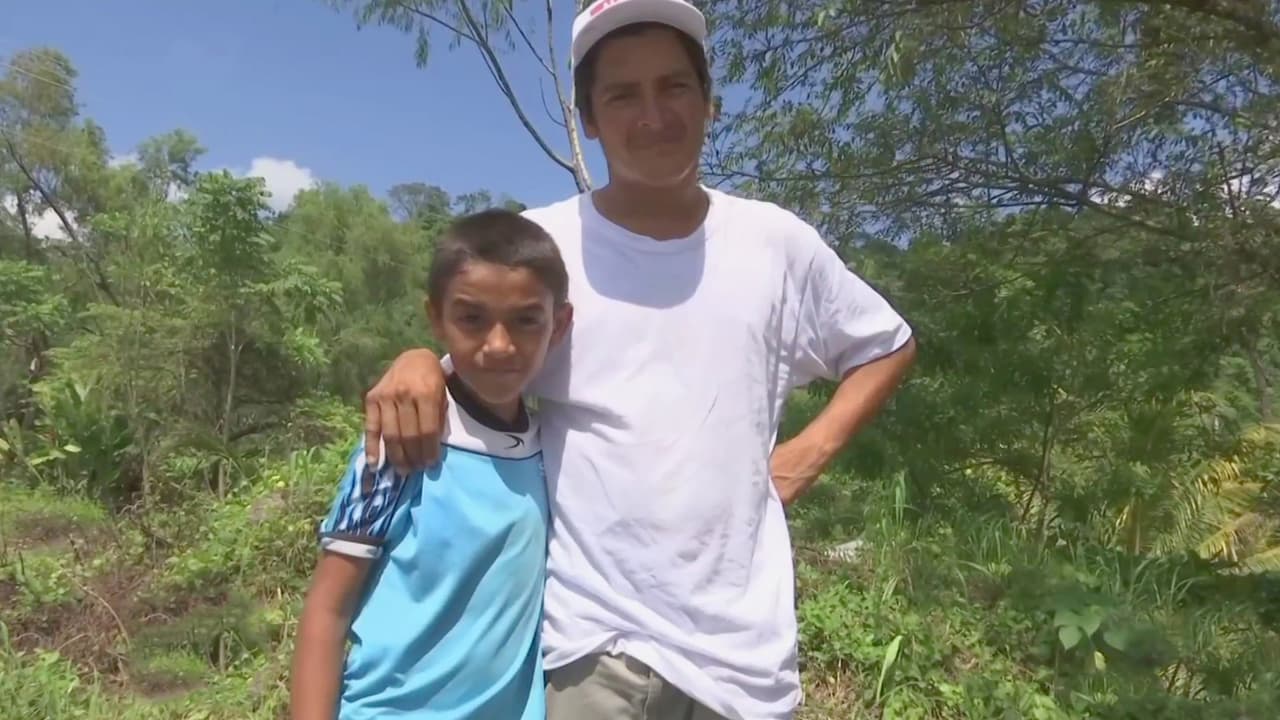 Este padre respira aliviado tras hallar sano y salvo a su hijo, perdido en la caravana de migrantes