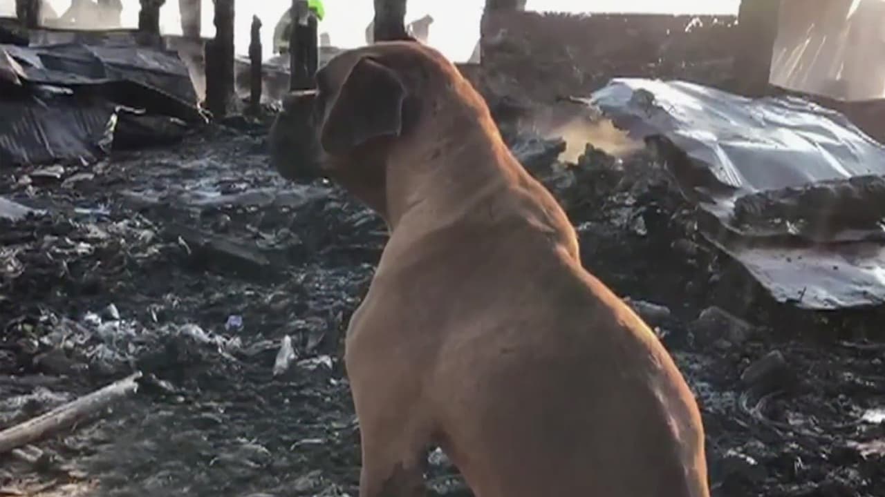 Este perro permaneció durante horas junto al cuerpo carbonizado de su dueño