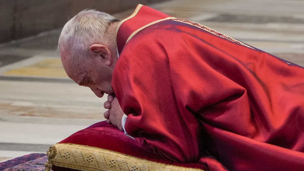 El sumo pontífice se postró durante varios segundos frente al altar para orar por las víctimas de la pandemia del coronavirus y pedir ayuda para toda la humanidad.