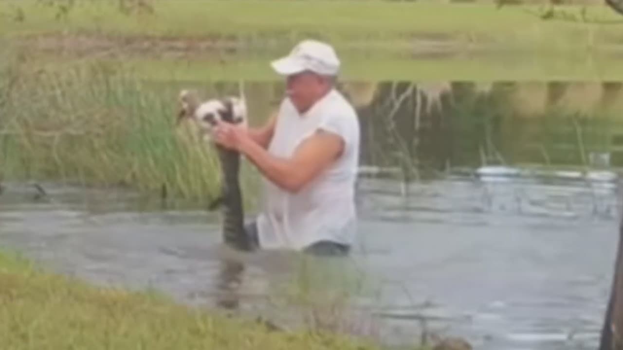 En un admirable acto de amor por los animales, el hombre de la tercera edad luchó contra el caimán para salvar a su mascota. El hombre se metió en el agua, logró abrir la mandíbula del caimán y liberar a su cachorro que salió corriendo.