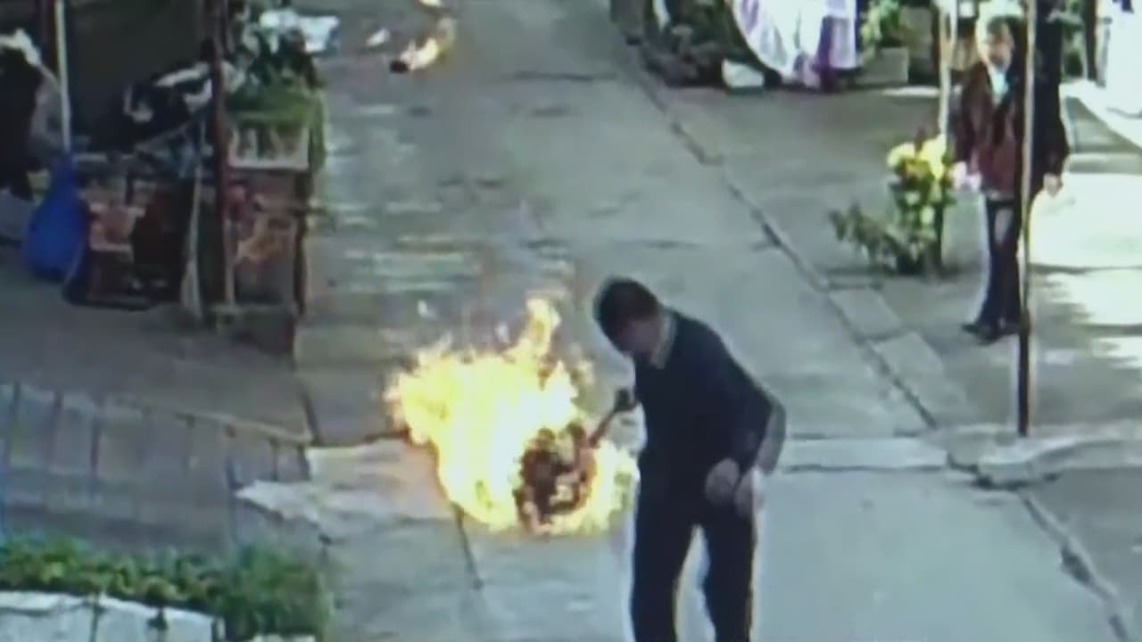 El buen samaritano vio que salía humo de una casa, entró y se encontró un tanque de gas en llamas, a punto de explotar. Sin pensarlo dos veces, y poniendo su vida en peligro, enganchó el artefacto y lo arrastró hasta un pozo donde finalmente, estalló.