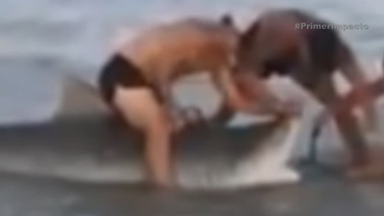 El video se robo la atención de las redes por el valor de sus protagonistas. Además, investigan ahora cuantos tiburones hay en la zona con el mismo problema.