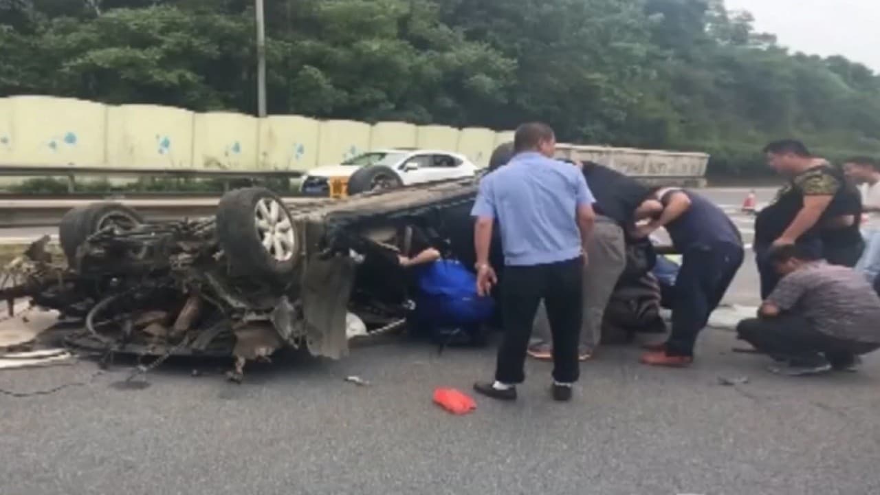 Imágenes de impacto: un vehículo en el que viajaban cinco personas se estrella contra la barrera de seguridad de una autopista en China