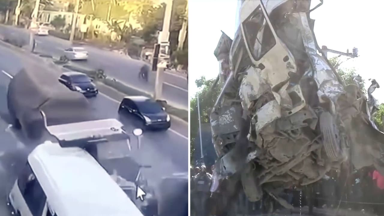 Imágenes sensibles: camión embiste a un autobús y mata al menos 10 personas
