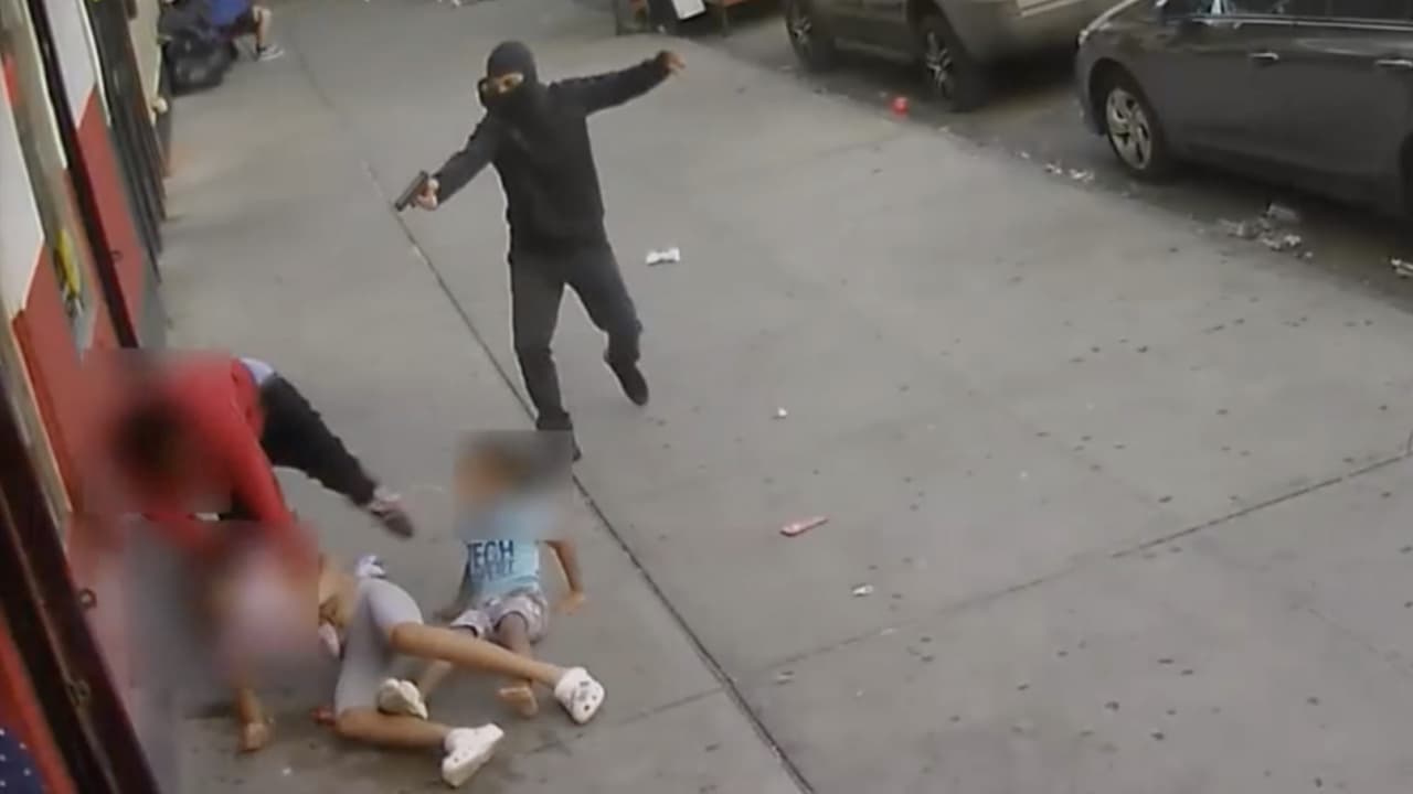 Dos niños pequeños quedaron en medio de un ataque en el que un hombre armado le disparó varias veces a corta distancia a un transeúnte de 24 años, según un video publicado este viernes por el Departamento de Policía de Nueva York.