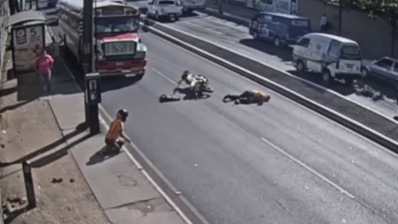 Los dos motociclistas acabaron tendidos en el piso y varios testigos corrieron a ayudarlos. Tuvieron que ser trasladados a un hospital.