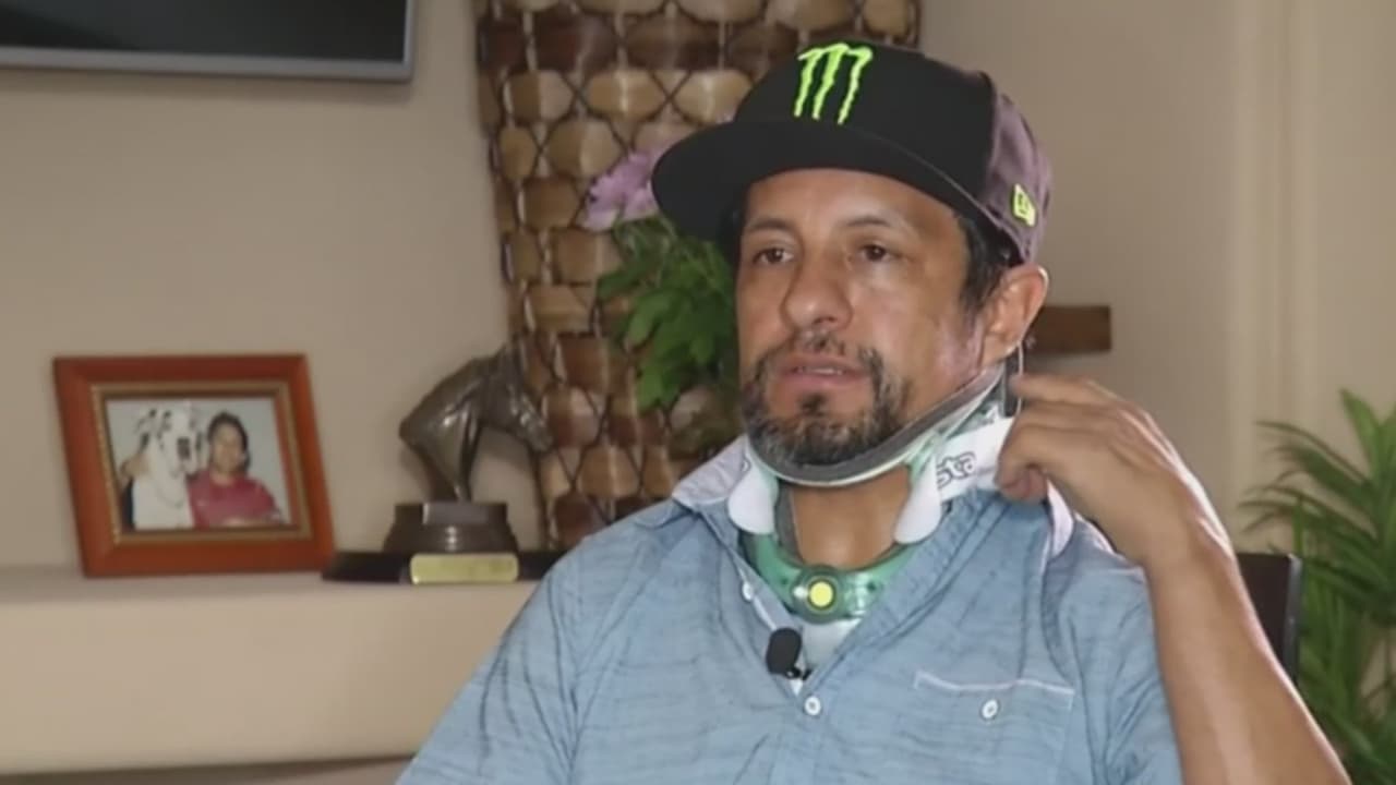 Víctor Espinoza se fracturó el cuello en la caída y casi queda inmóvil. Su caballo sufrió un infarto en mitad de una carrera que lo hizo perder el control y darse un golpe que podría haber sido mortal.