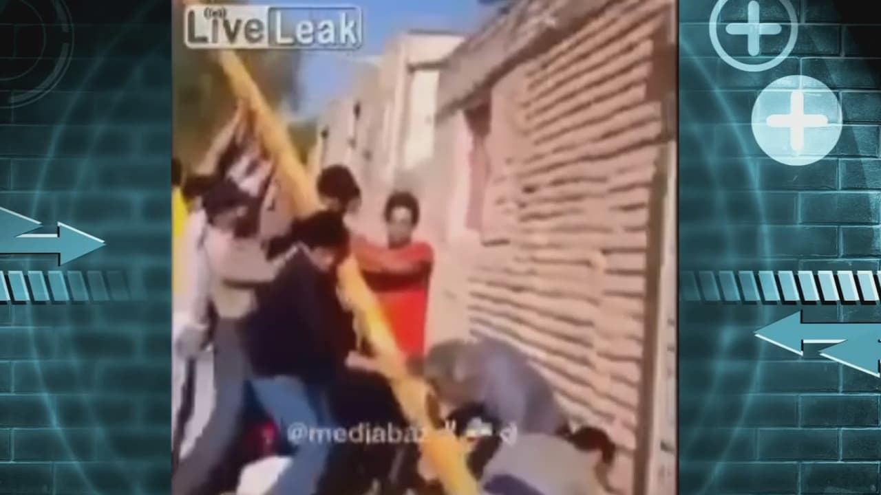 El grupo quería levantar un poste eléctrico que había caído al suelo en un pueblo de Irán, sin sospechar que terminarían electrocutados cuando uno cable de alto voltaje generó una potente descarga eléctrica, que los lanzó al suelo.