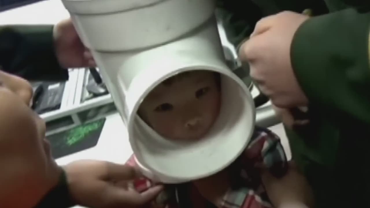 En China, un menor de 5 años quedó con la cabeza atrapada. Necesitaron de equipos especiales para liberarlo y no causarle heridas graves.