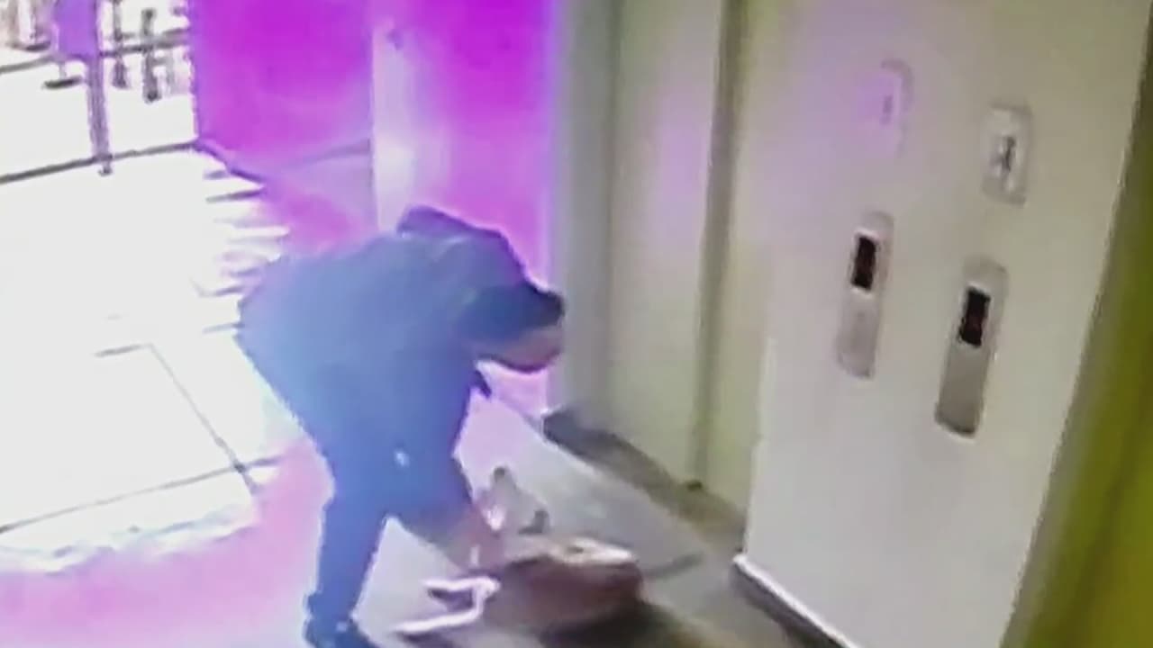 Las imágenes muestran al hombre golpeando al animal y lanzándolo adentro del ascensor. Según los vecinos, el sujeto es muy violento y se comparta de esta forma frecuentemente.