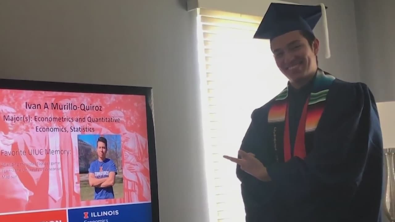 Sus padres llegaron como indocumentados a EEUU y lucharon por sacar adelante a sus hijos. Iván Murillo se graduó como Economista Estadista de la Universidad de Illinois, un logro que llena de orgullo a la familia. La celebración, en medio de la pandemia, estuvo marcada por el distanciamiento físico, guantes, tapabocas y se realizó sin abrazos.