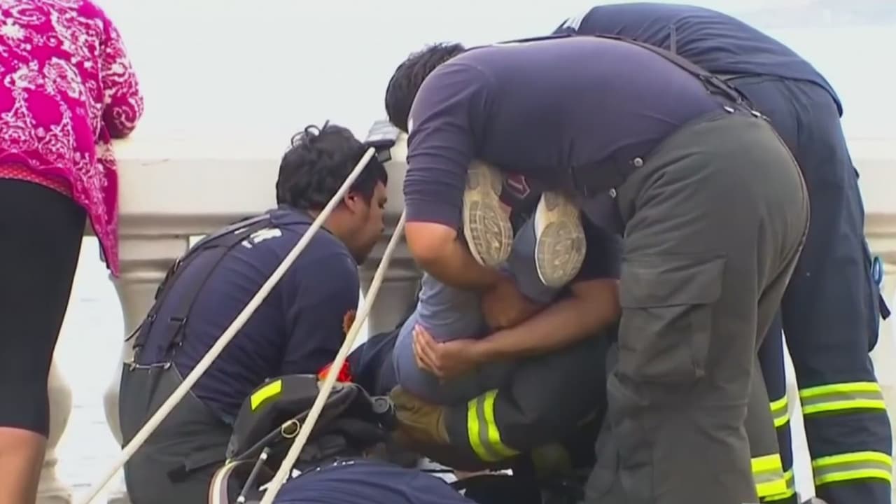 El pequeño quería ver a los pescadores en la playa de Viña del Mar. Los bomberos tuvieron que destruir la estructura para sacarlo.
