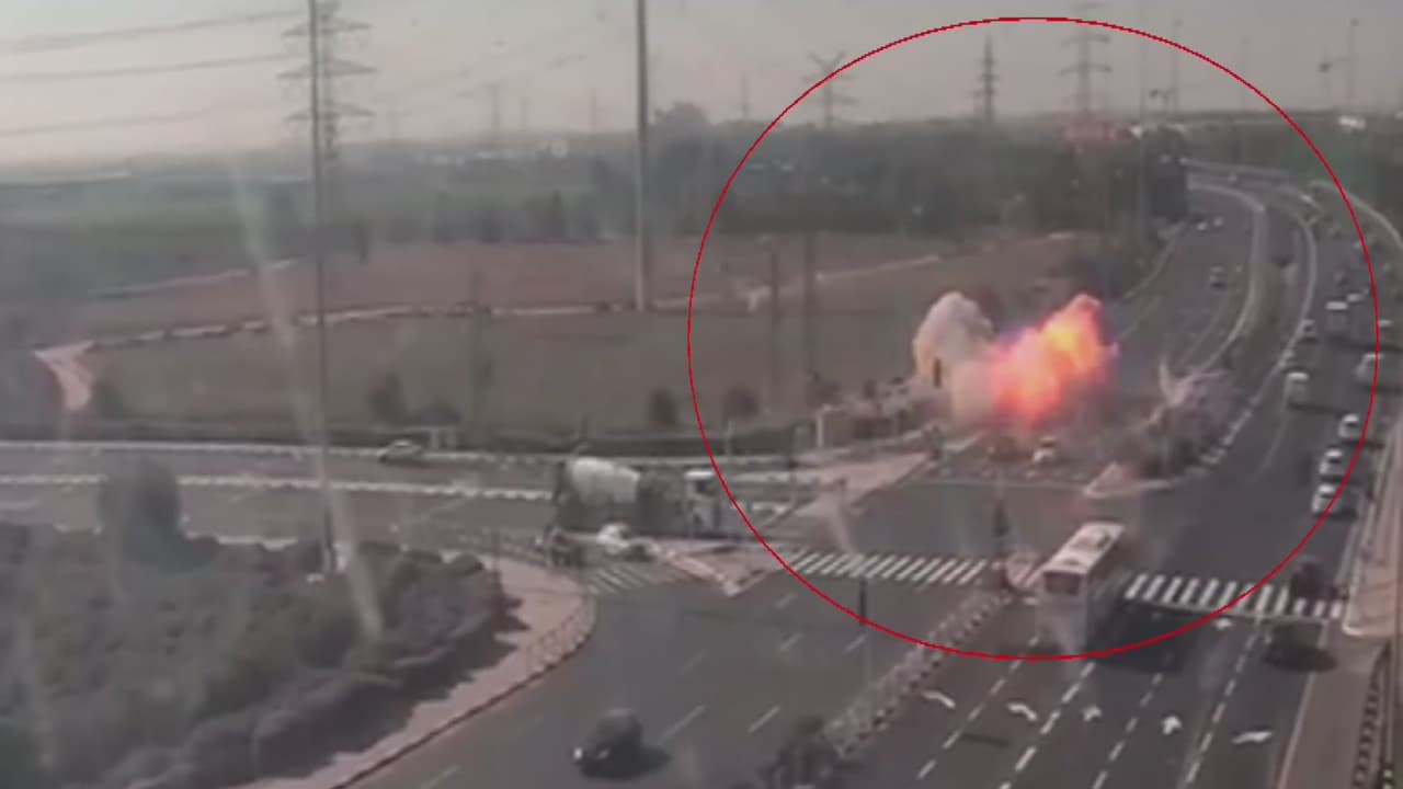 La explosión que generó un cohete al impactar contra una autopista en Israel