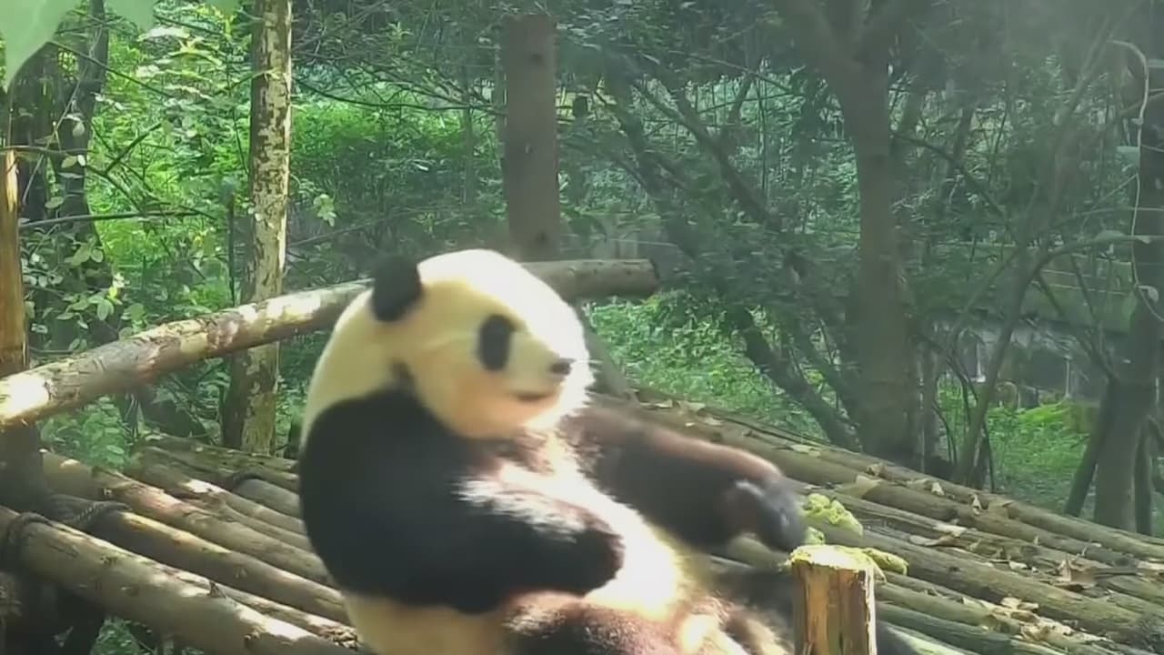 Un panda deleitó a todos cuando comenzó a hacer abdominales sobre su cama de bambú, tras despertarse de una placentera siesta.