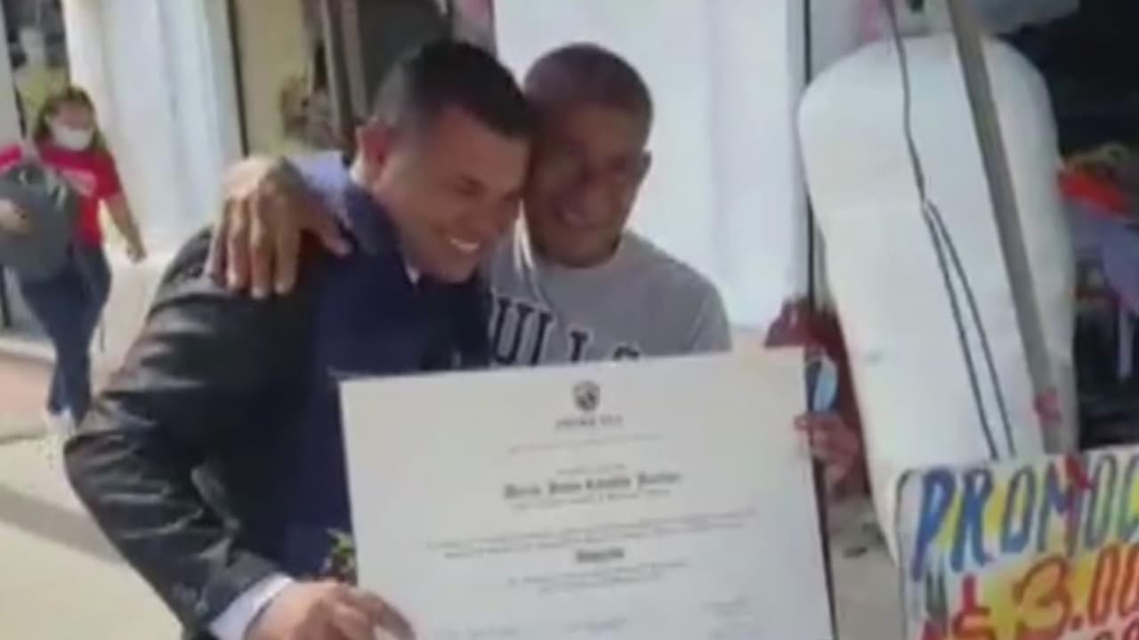 La foto viral de este abogado recién graduado junto a su padre y el carrito ambulante con el que pagó la universidad