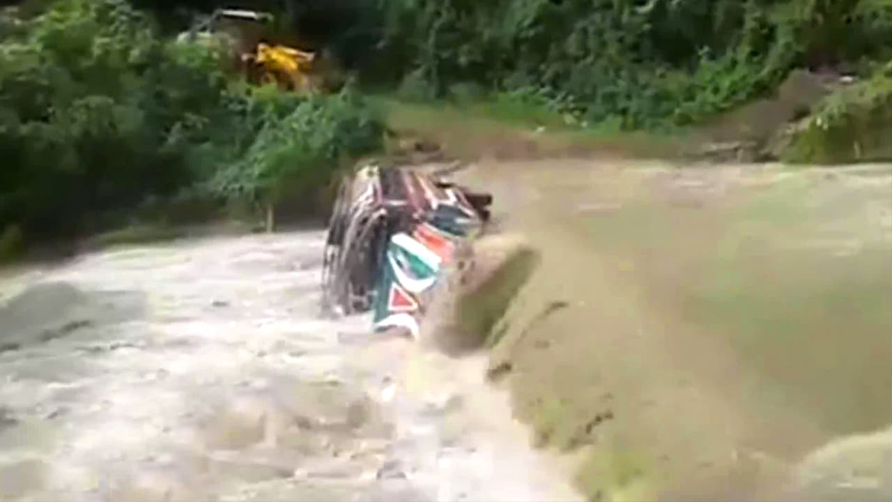La fuerza de la corriente arrastró a un autobús que trataba de cruzar un río en Guatemala