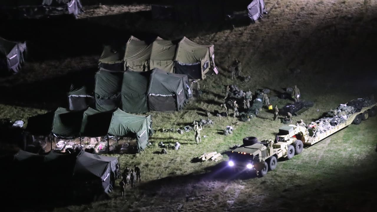 Los militares colocan alambrado en la frontera para tratar de impedir la entrada de los migrantes. Aseguran que varias autopistas podrían quedar cerradas y obstaculizar el tráfico.
