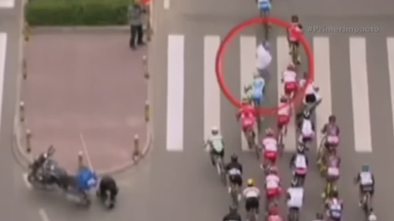 La imprudencia de un transeúnte desata un aparatoso accidente en una carrera de bicicletas