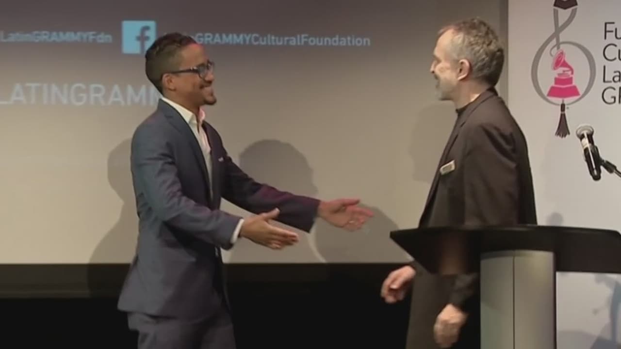 La incontenible emoción de un joven hispano al recibir una beca musical de las manos de Miguel Bosé