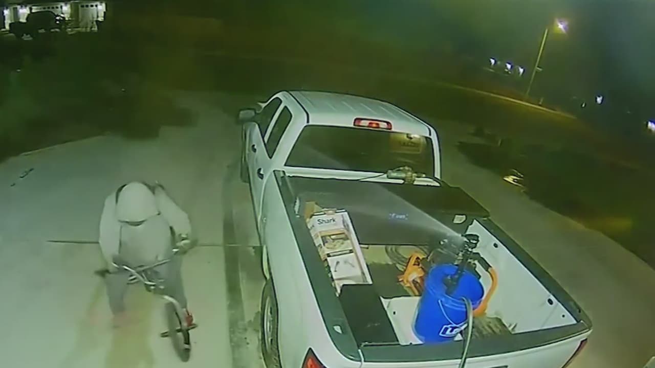 Cansada de los robos en la entrada de su vivienda, la mujer creó una artefacto que se activa con el movimiento un chorro de agua.