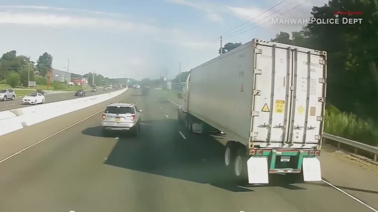 La pelea de dos conductores en una vía hace volcar a un camión de carga en Nueva Jersey