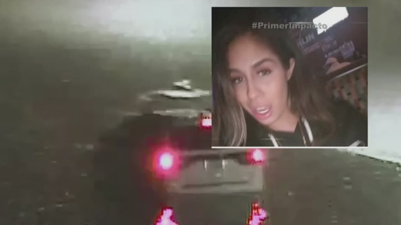 Las cámaras de seguridad captan cómo la camioneta de la hispana de 25 años entra a un túnel inundado, que está bloqueado parcialmente por una patrulla, cuando de pronto cae en una trampa sin salida.