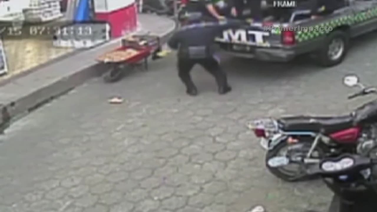 El video muestra la lucha del adolescente contra unos policías que se llevaban su puesto de ventas.