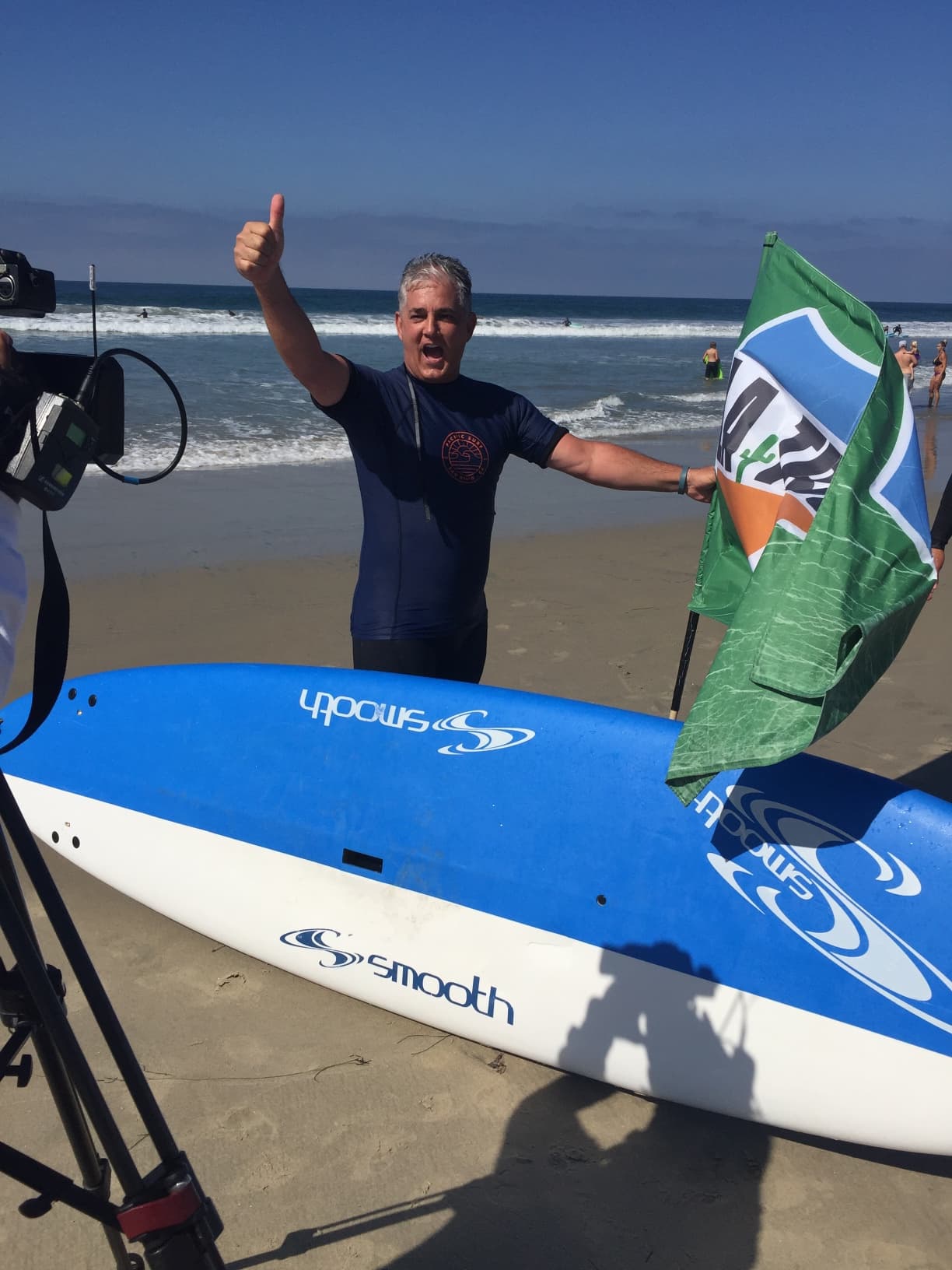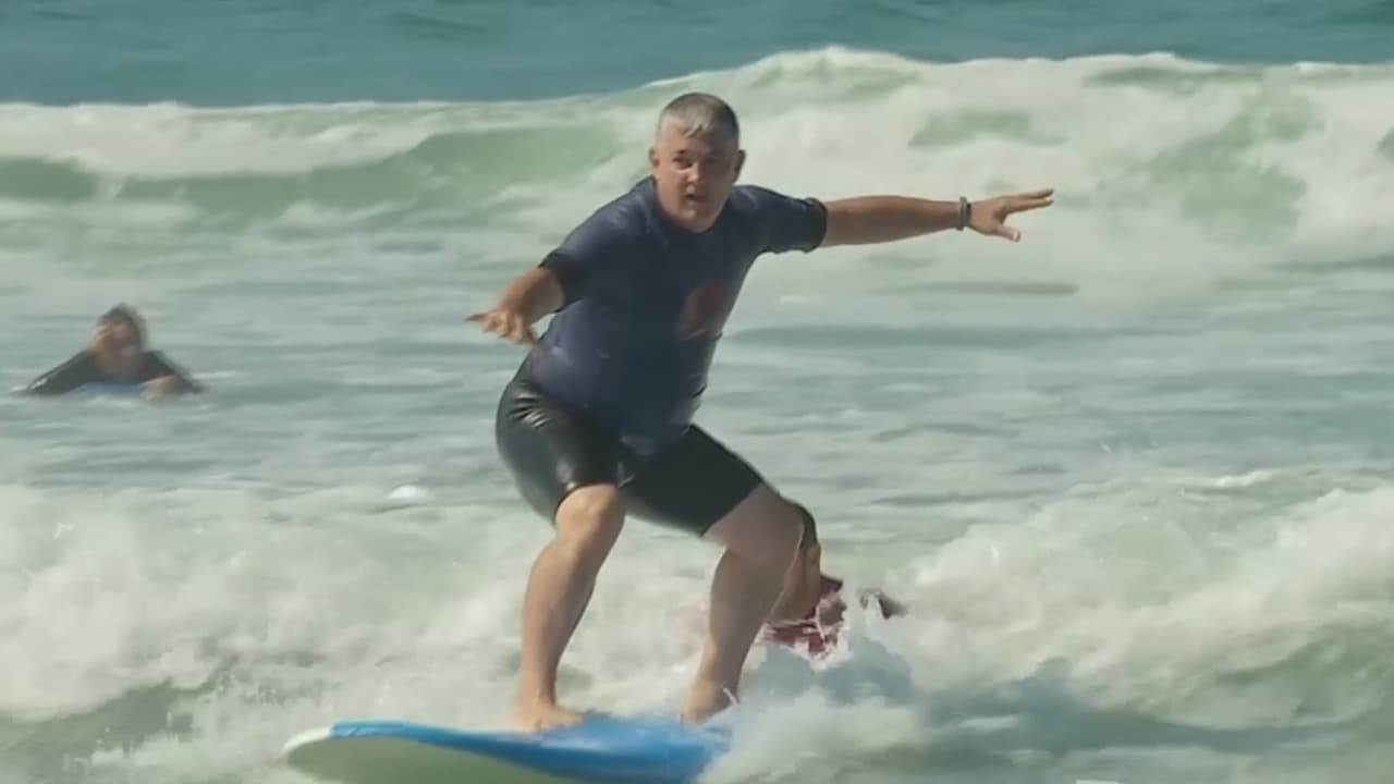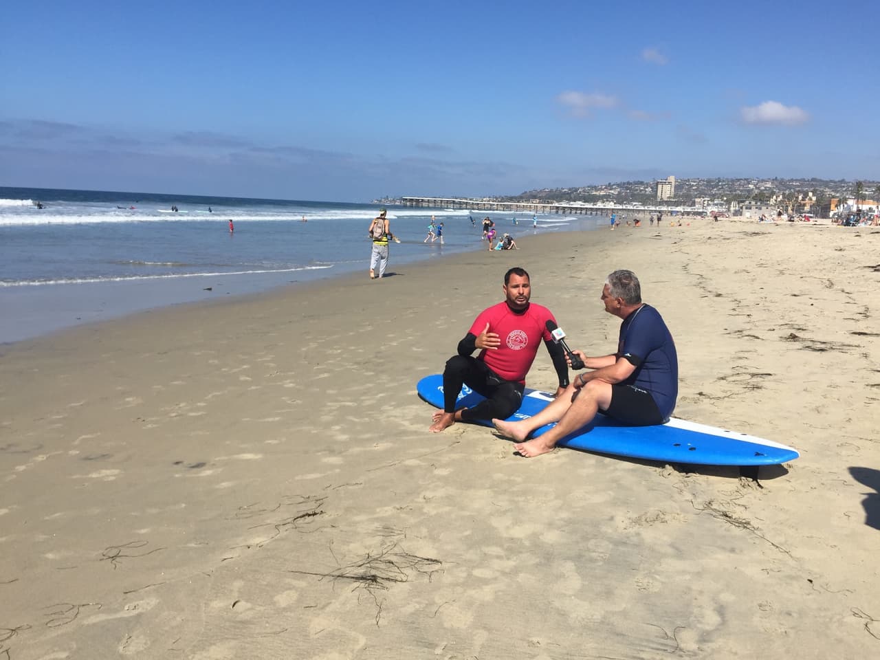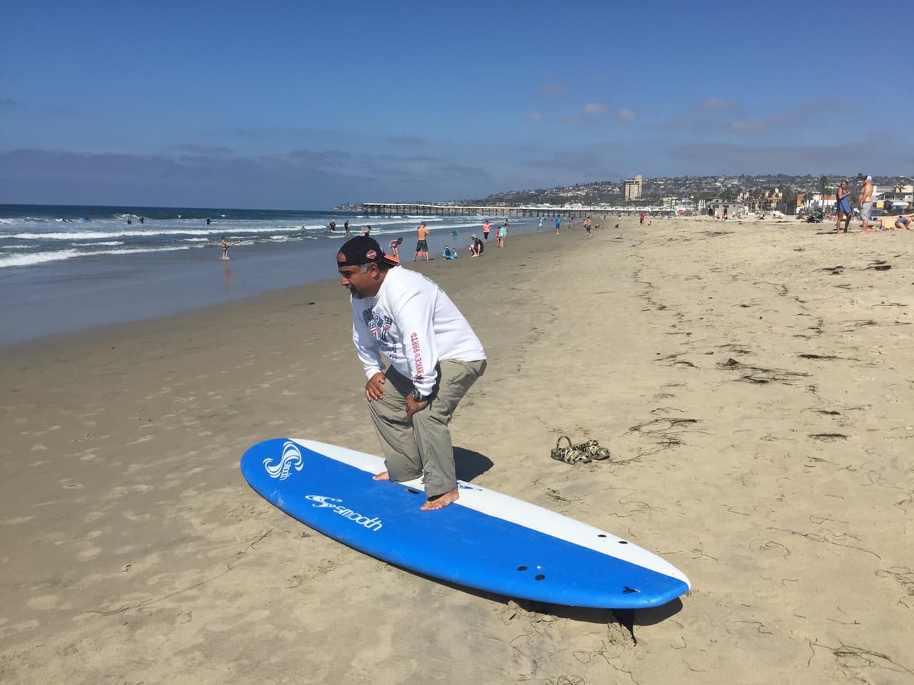 Después de practicar en la arena Ricardo Arambarri se aventuró a cabalgar las olas en las playas de la frontera, donde tras varios intentos logró pararse por lo menos 30 segundos en una tabla de surf.