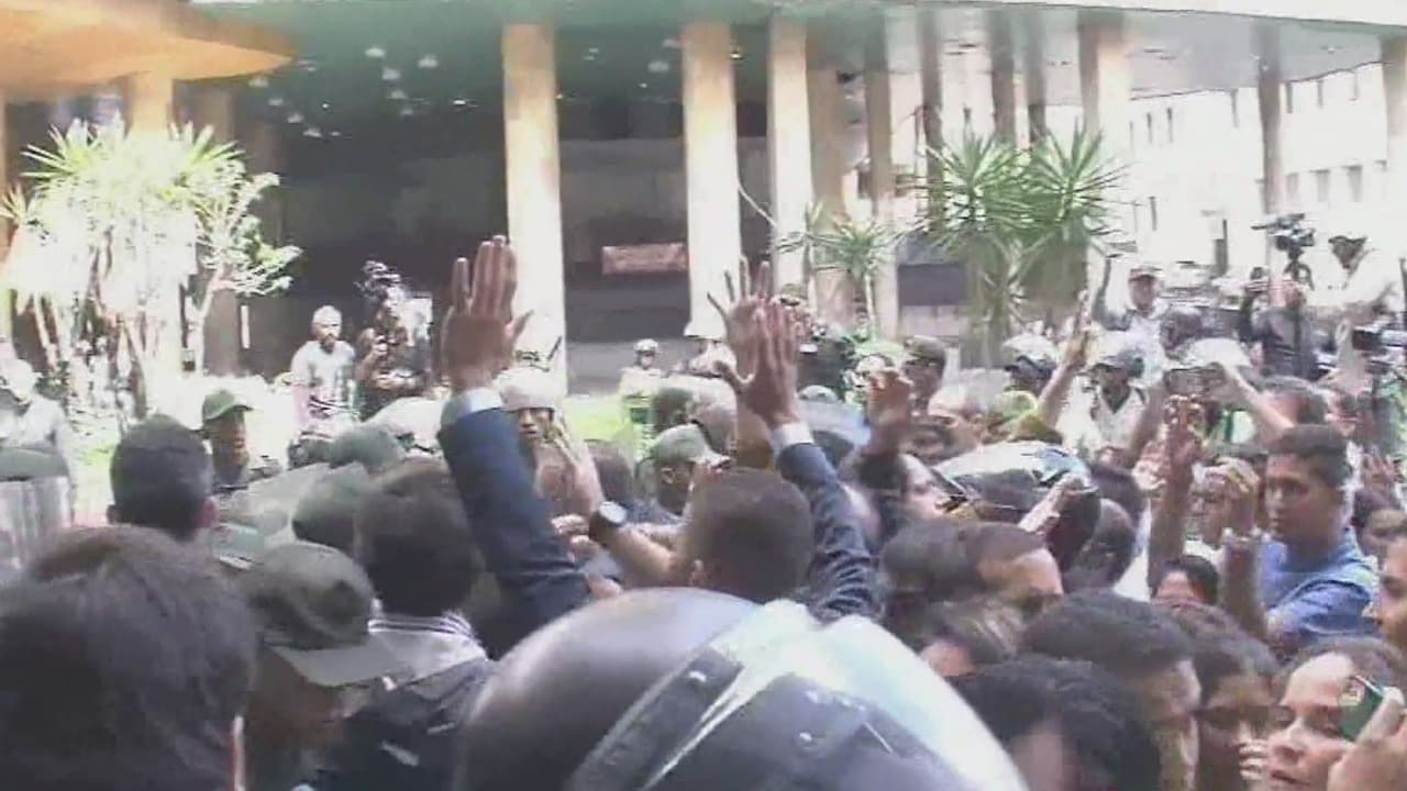 Decenas de legisladores se enfrentaron a gritos y empujones con la policía de Venezuela; los opositores trataban de entrar a la sede del Poder Electoral.